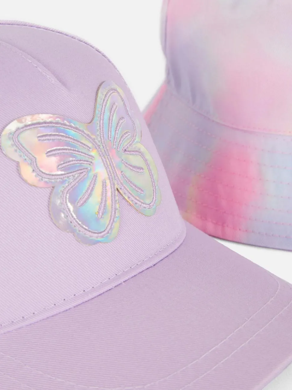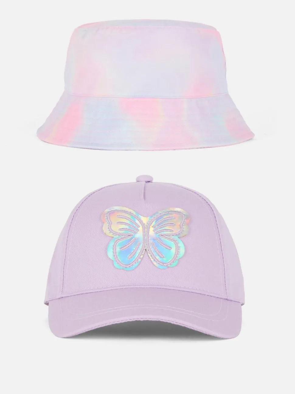 Czapka z motylem i kapelusz wędkarski we wzór ombré