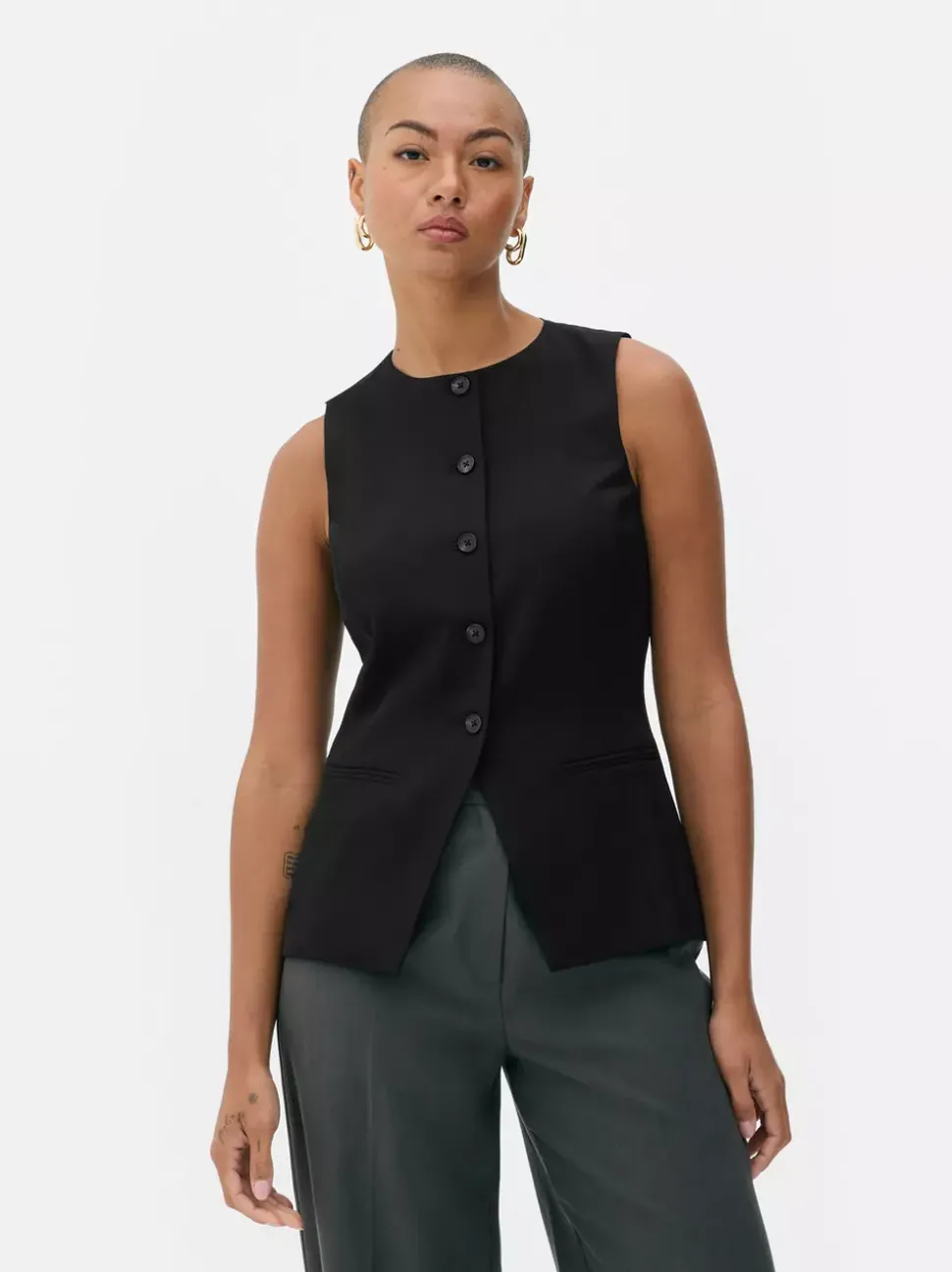 MarynarkiKrój: Standardowy krójDługość rękawów: Bez rękawówRozmiar modelki: SZapięcie: GuzikMateriał: MATERIAŁ GŁÓWNY – 95% poliester, 5% elastan, PODSZEWKA – 100% poliester