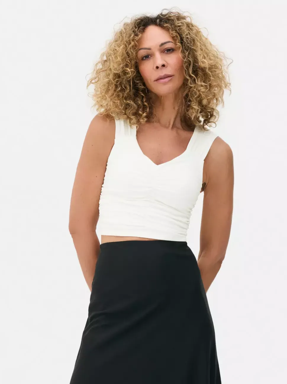 Dżersejowa koszulka bez rękawów z marszczeniami