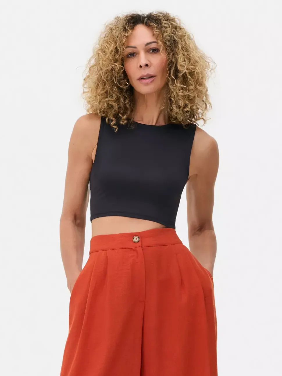 Topy i T-shirtyDekolt: Głęboki dekoltKrój: Standardowy krójDługość rękawów: Bez rękawówRozmiar modelki: SMateriał: 90% poliamid, 10% elastan