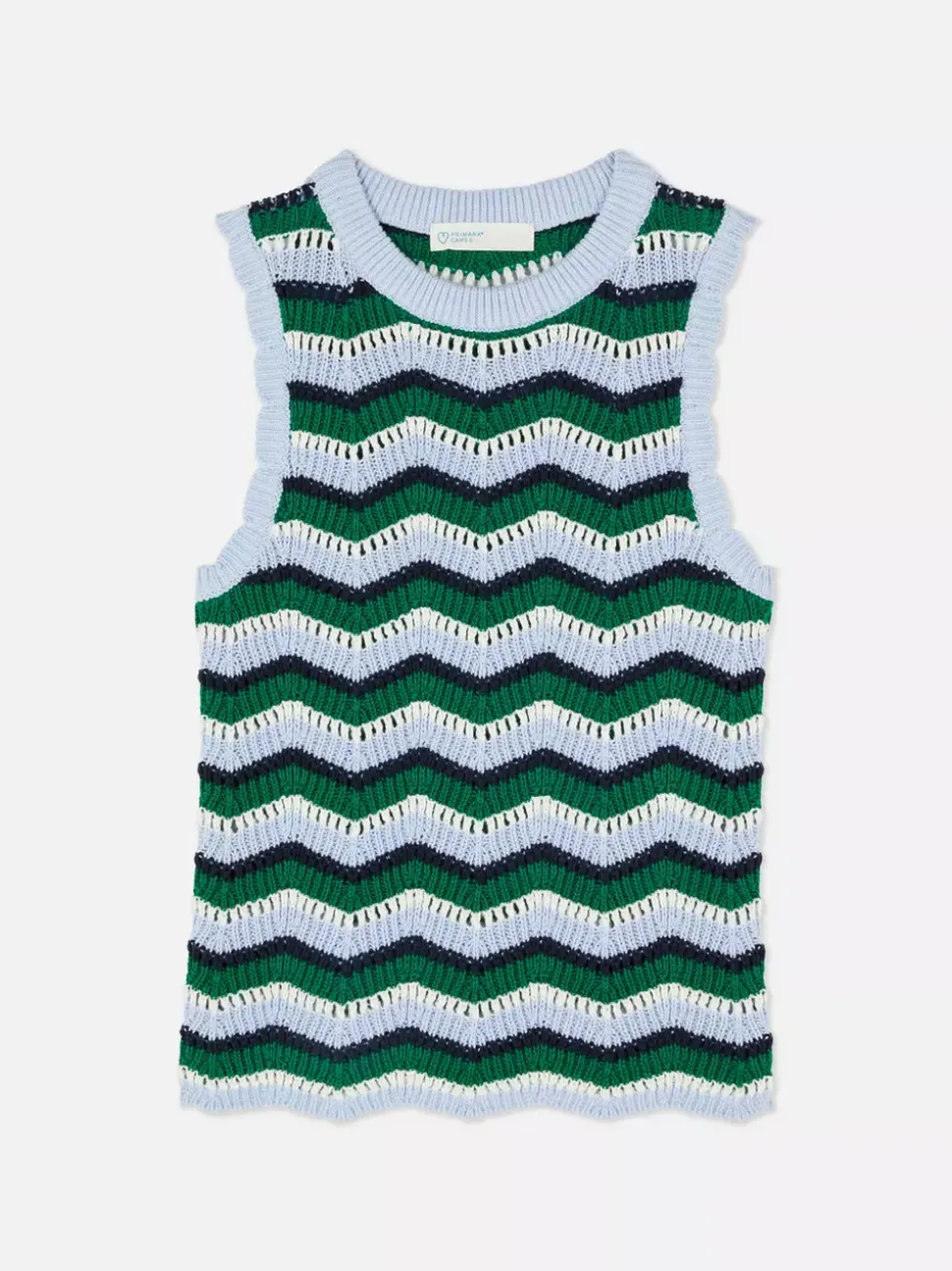 Swetry i kardiganyDekolt: Okrągły dekoltKrój: Standardowy krójDługość rękawów: Bez rękawówRozmiar modelki: S-10/12Materiał: 100% bawełnaBezpieczeństwo pożarowe: OSTRZEŻENIE! Trzymać z dala od ognia