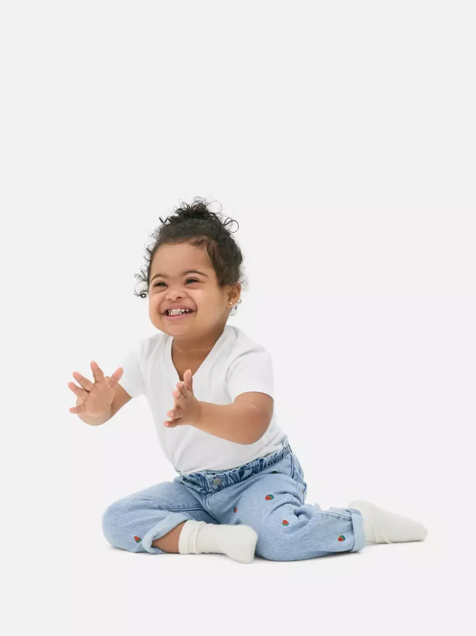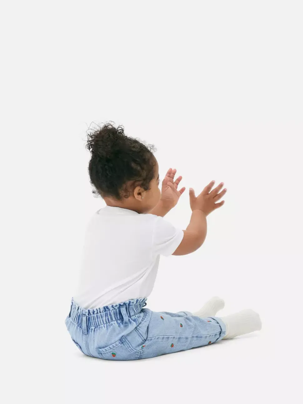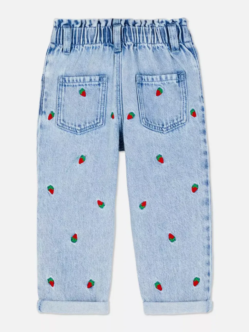 Jeansy z haftem w truskawki