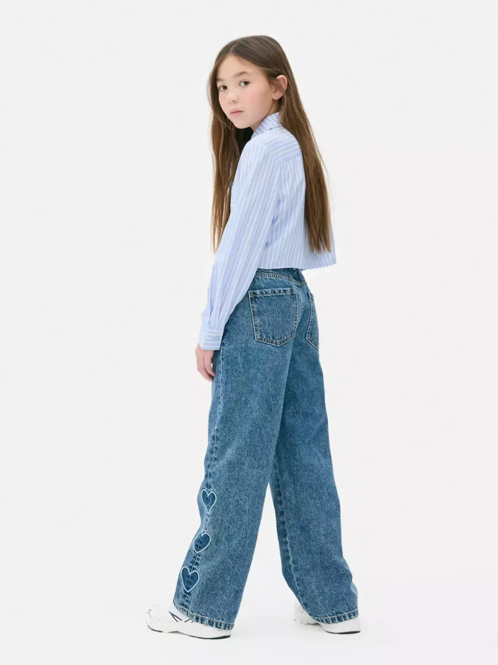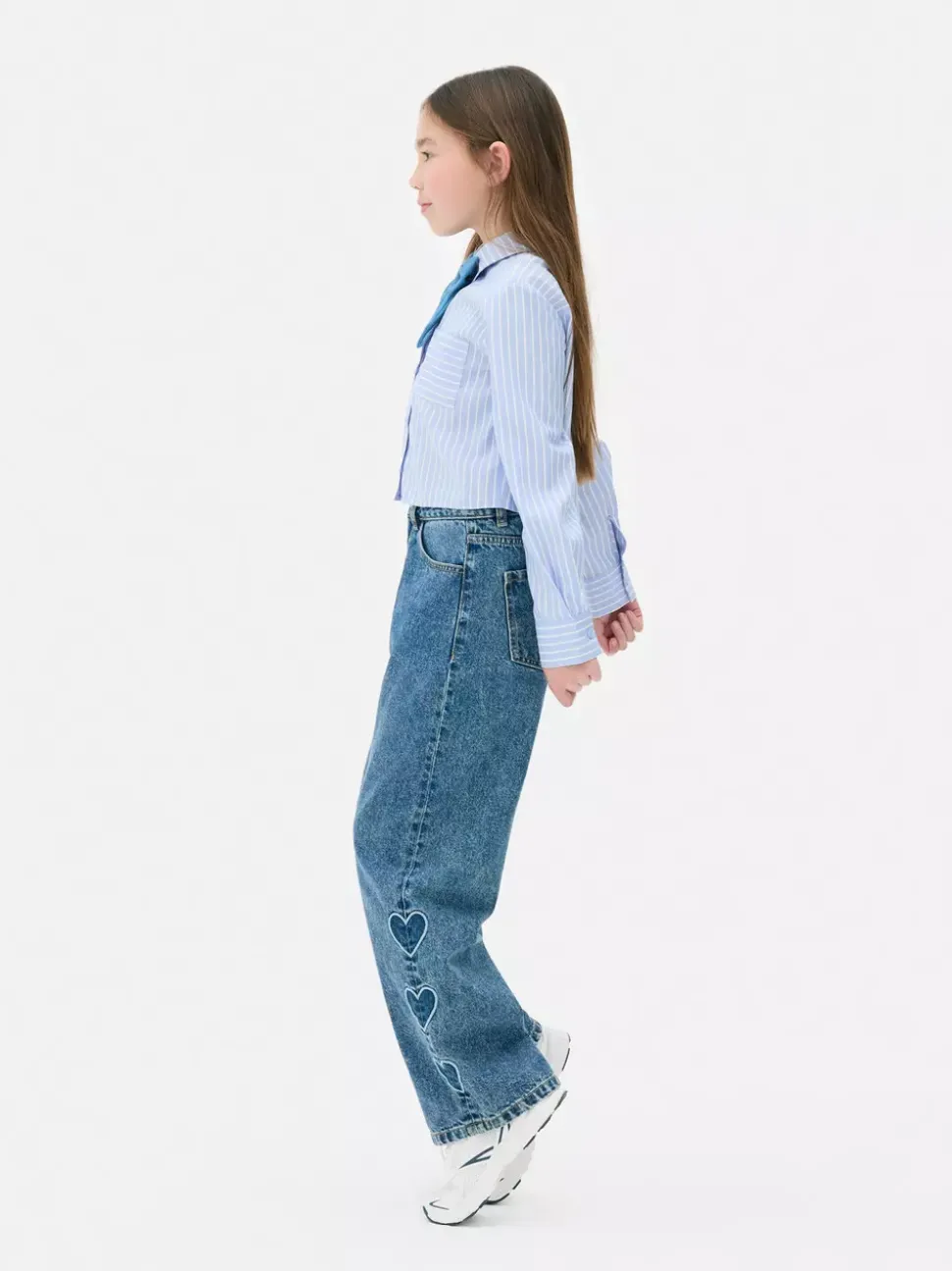 Jeansy z haftowanymi sercami