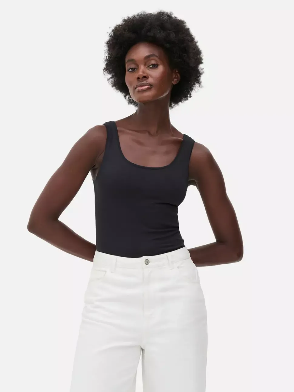 Topy i T-shirtyDekolt: Głęboki dekoltKrój: Standardowy krójDługość rękawów: Bez rękawówRozmiar modelki: SMateriał: 100% bawełnaBezpieczeństwo pożarowe: OSTRZEŻENIE! Trzymać z dala od ognia