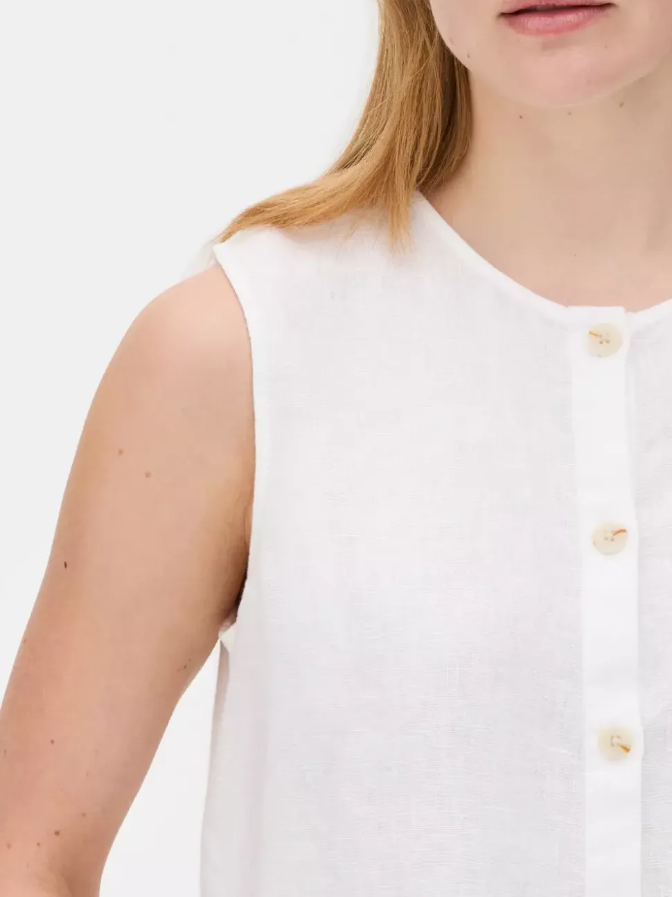 Koszule i bluzkiDekolt: Okrągły dekoltKrój: Standardowy krójDługość rękawów: Bez rękawówRozmiar modelki: S-10/12Materiał: 100% len