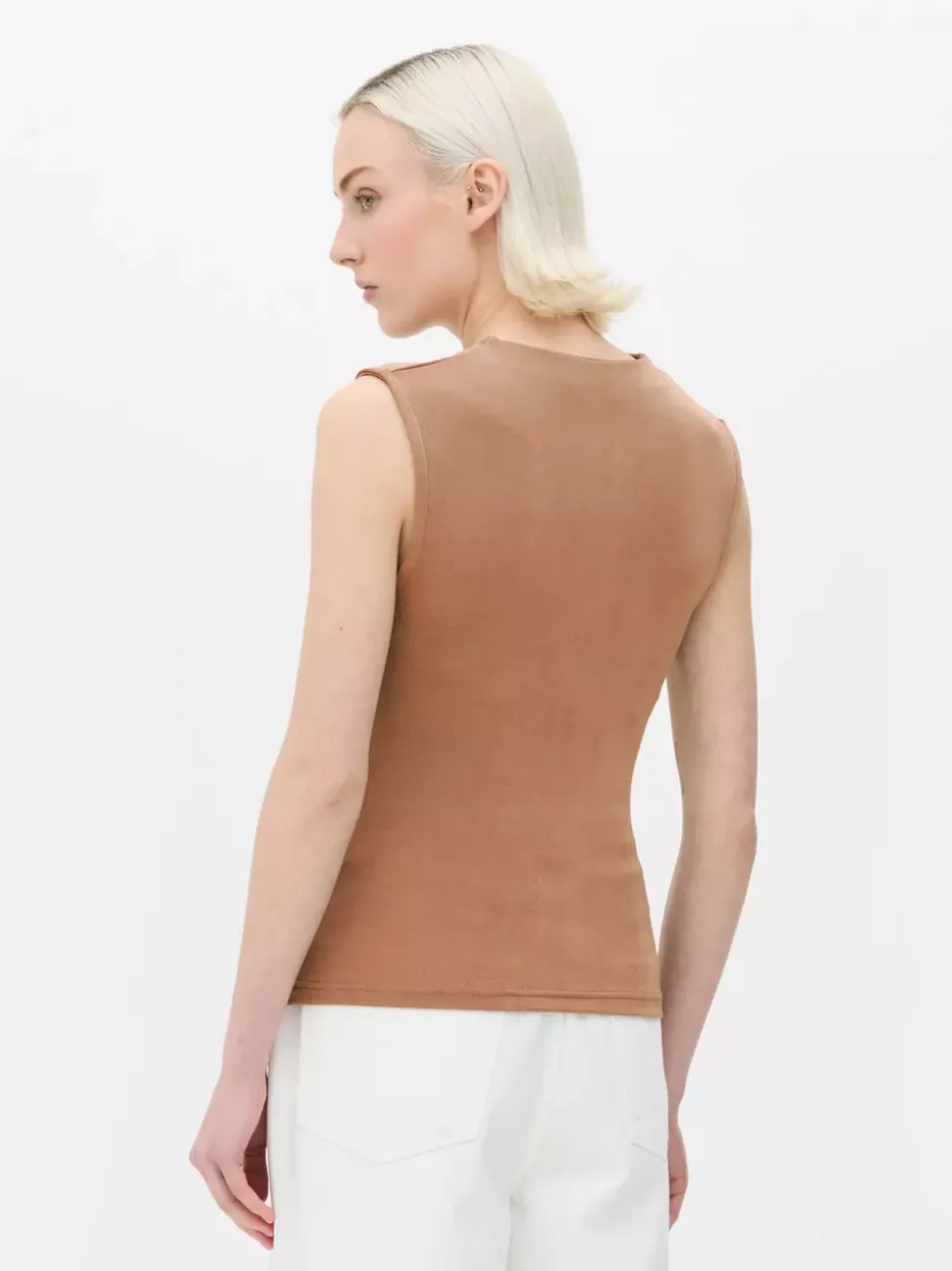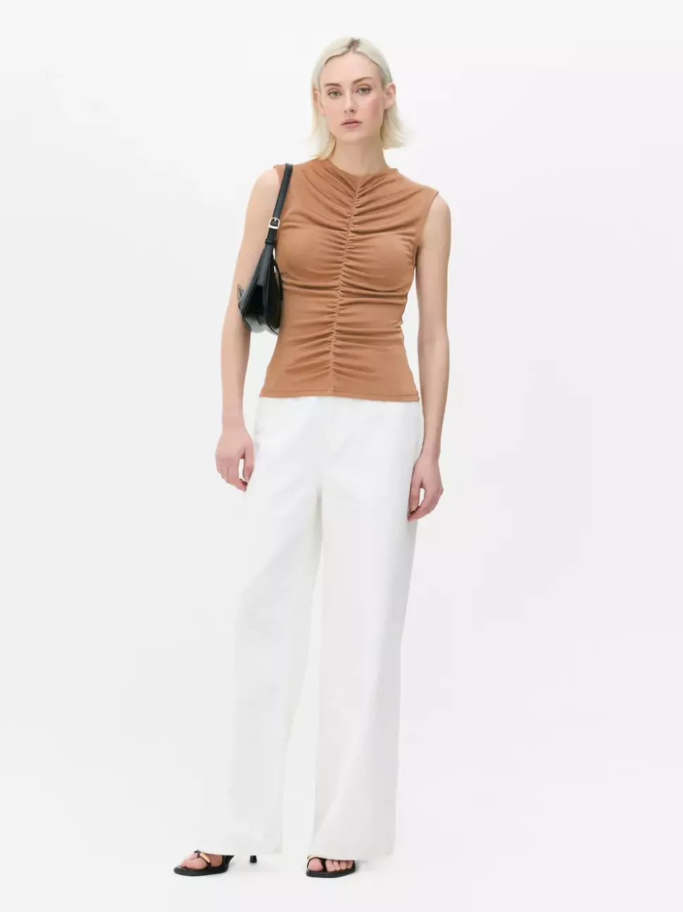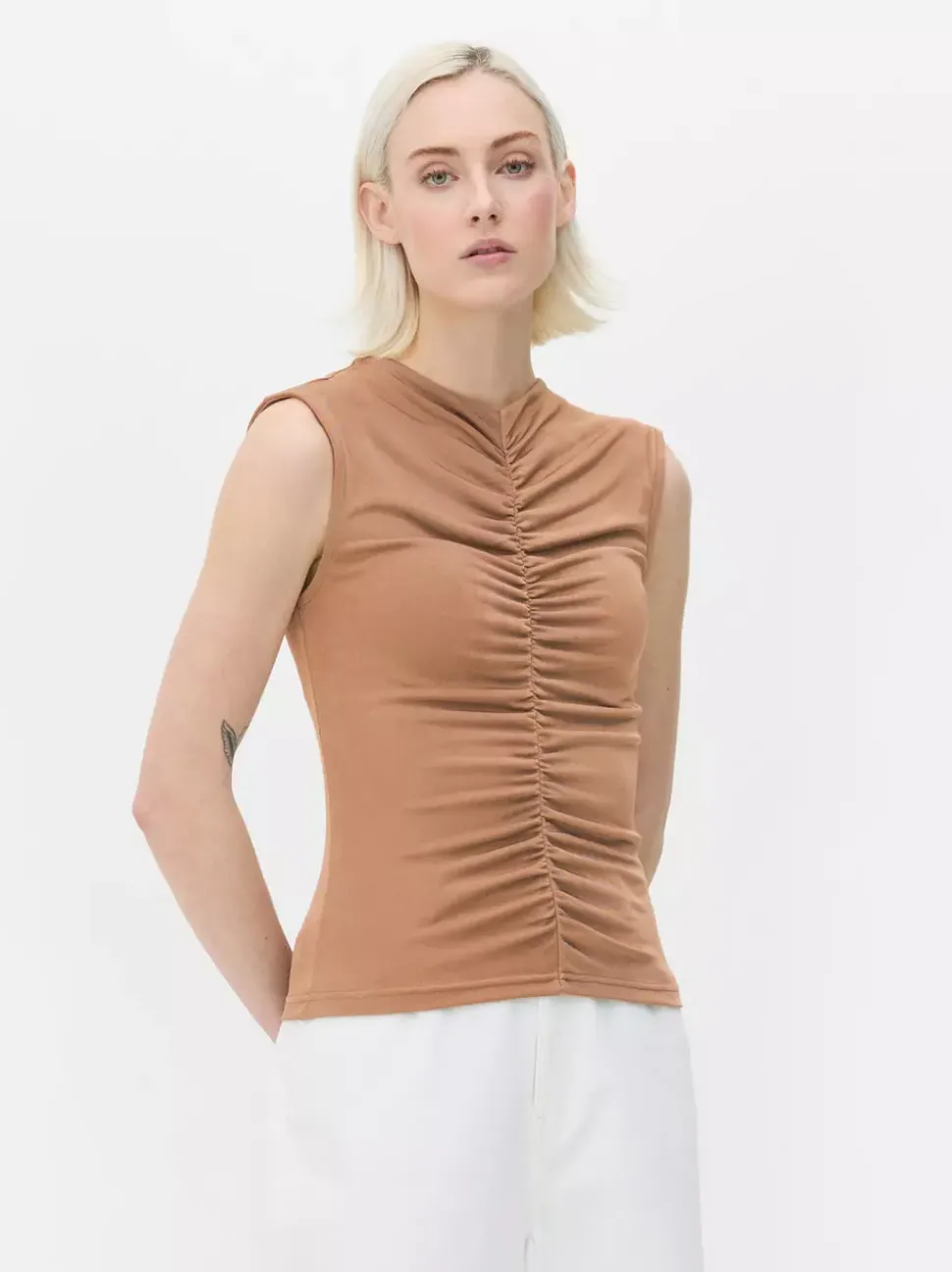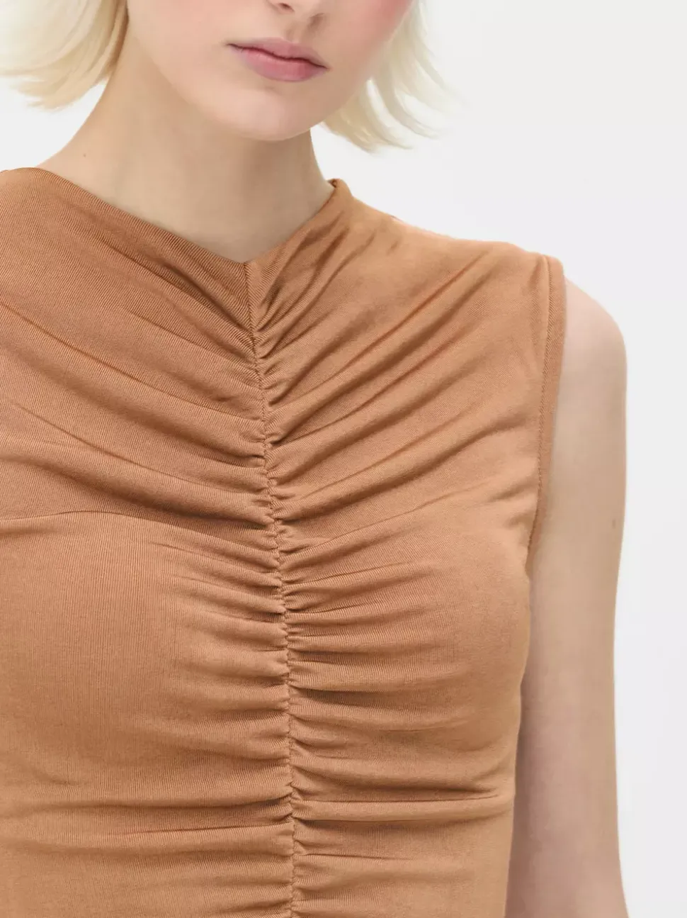 Obcisła koszulka bez rękawów z marszczeniami