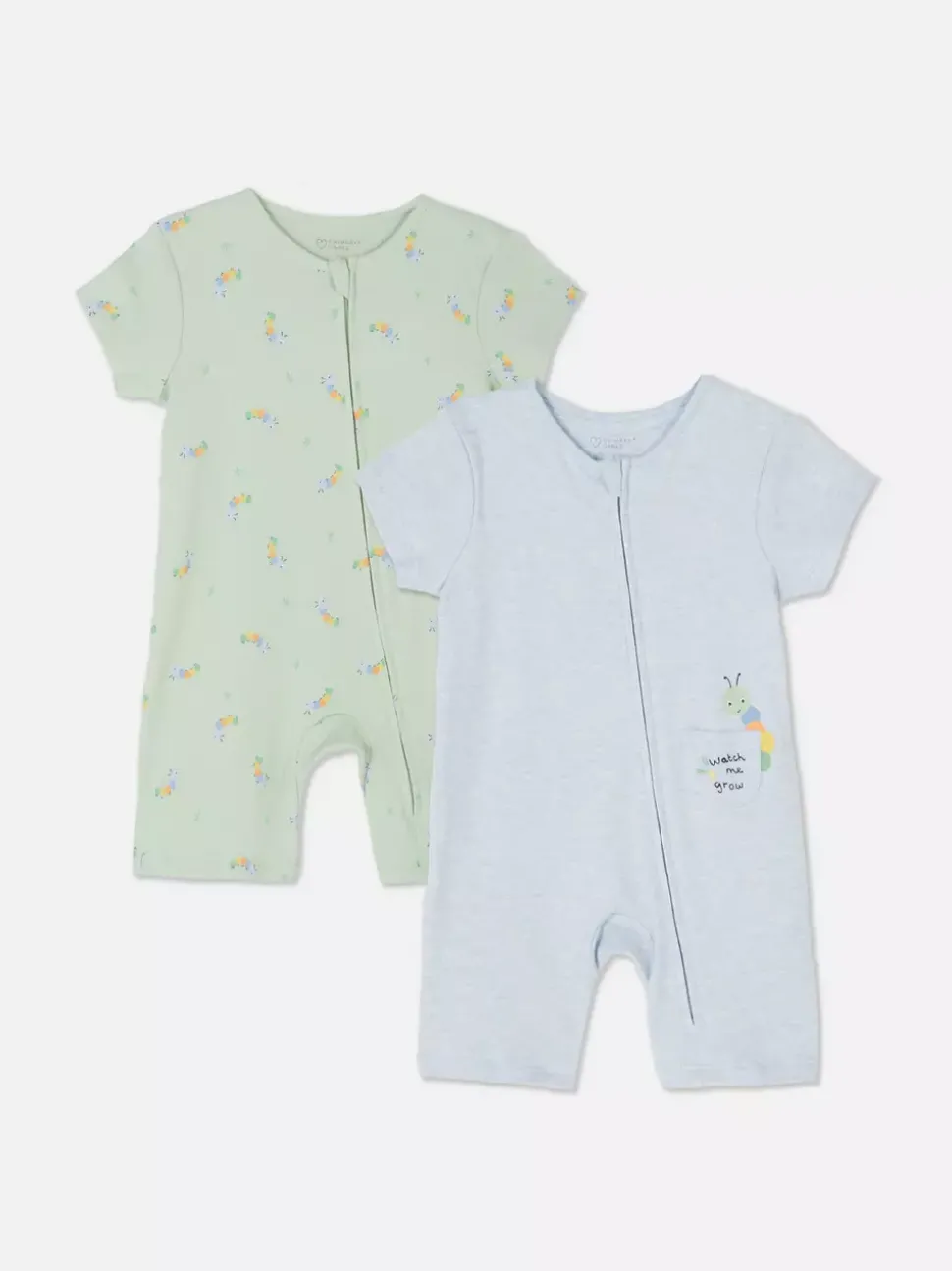 Pajacyki z suwakiem i napisem Watch Me Grow, 2 szt.