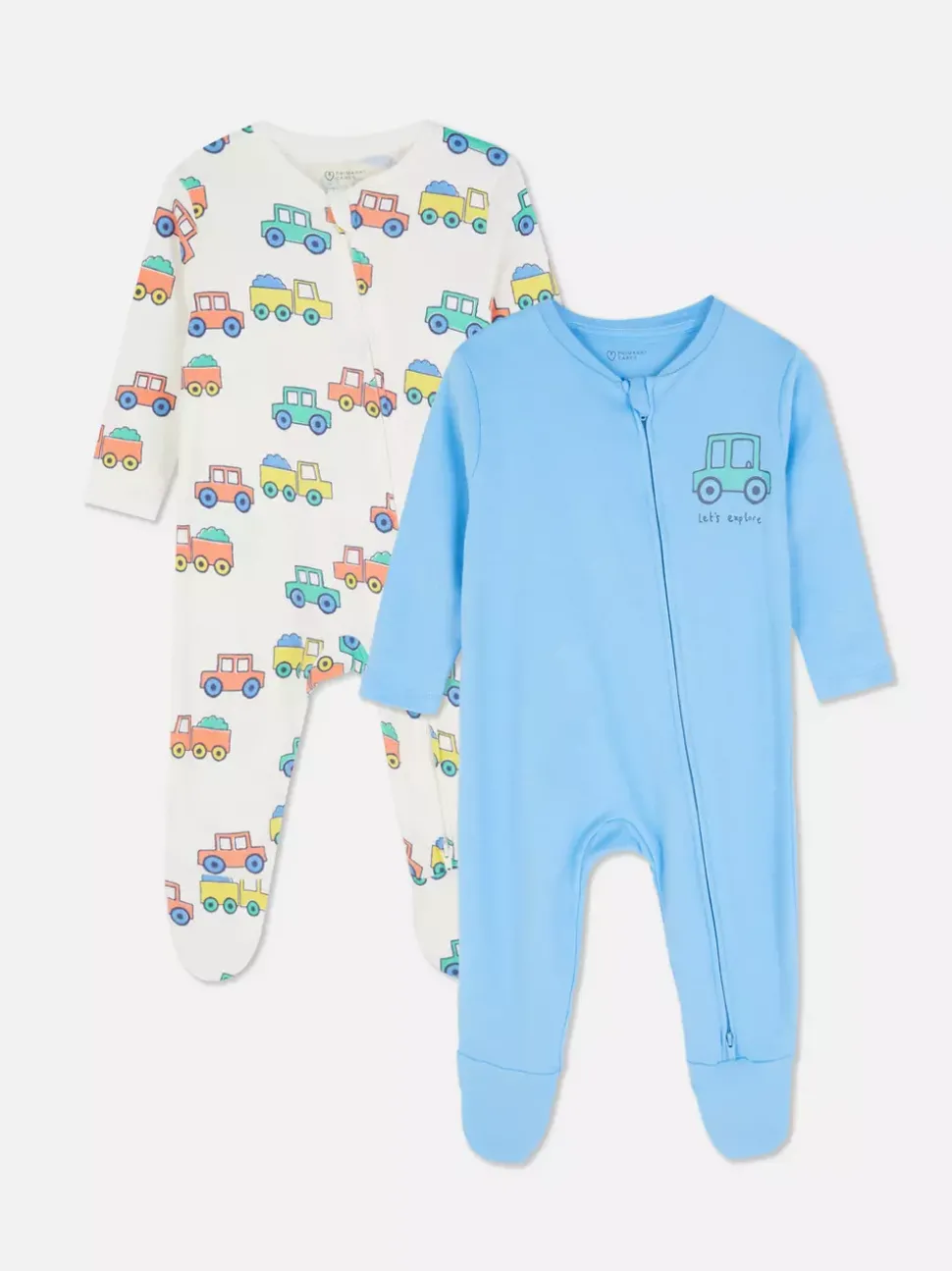 Śpioszki na suwak ze wzorem w samochodziki, 2 szt.