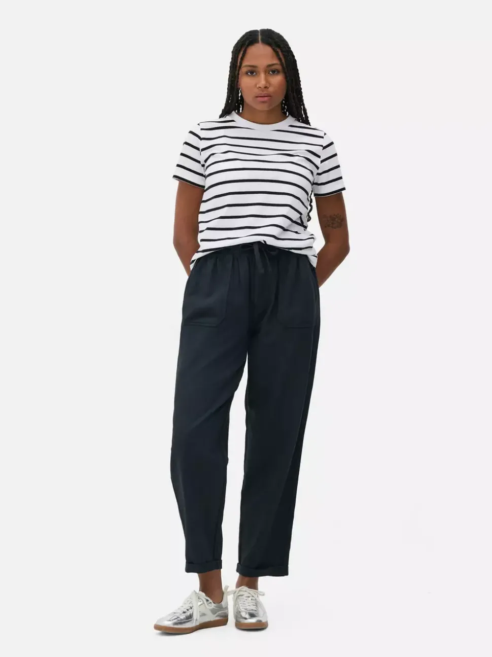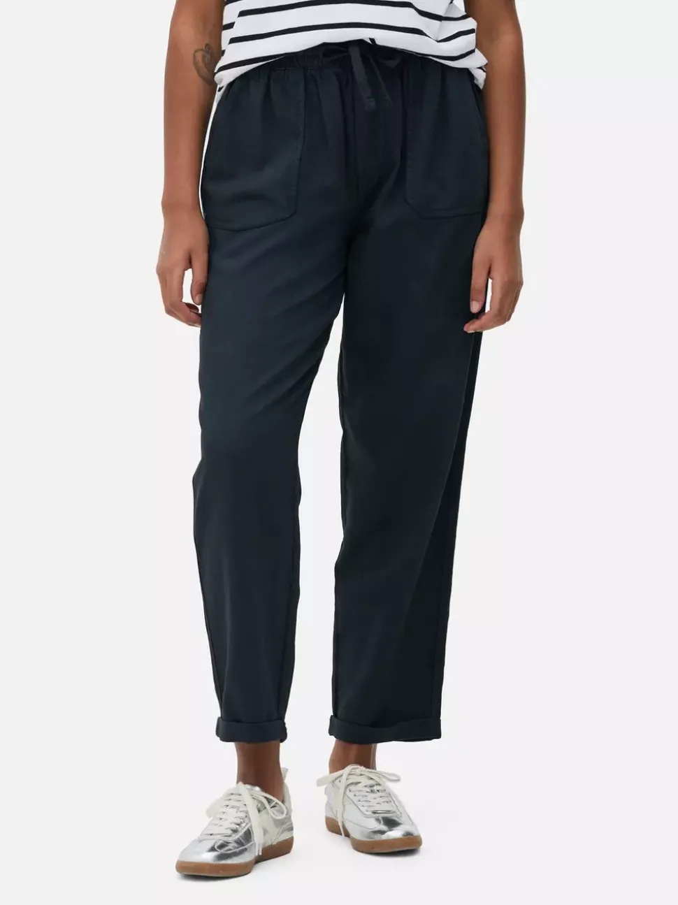 Spodnie dresoweKrój: Standardowy krójRozmiar modelki: MZapięcie: SznurekMateriał: 56% materiał lyocell, 44% bawełna