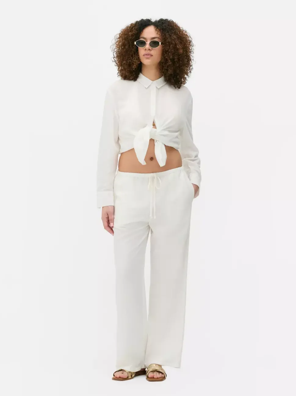 Spodnie i legginsyKrój: Standardowy krójDługość: Pełna długośćRozmiar modelki: SZapięcie: SznurekMateriał: 54% wiskoza, 36% bawełna, 10% len