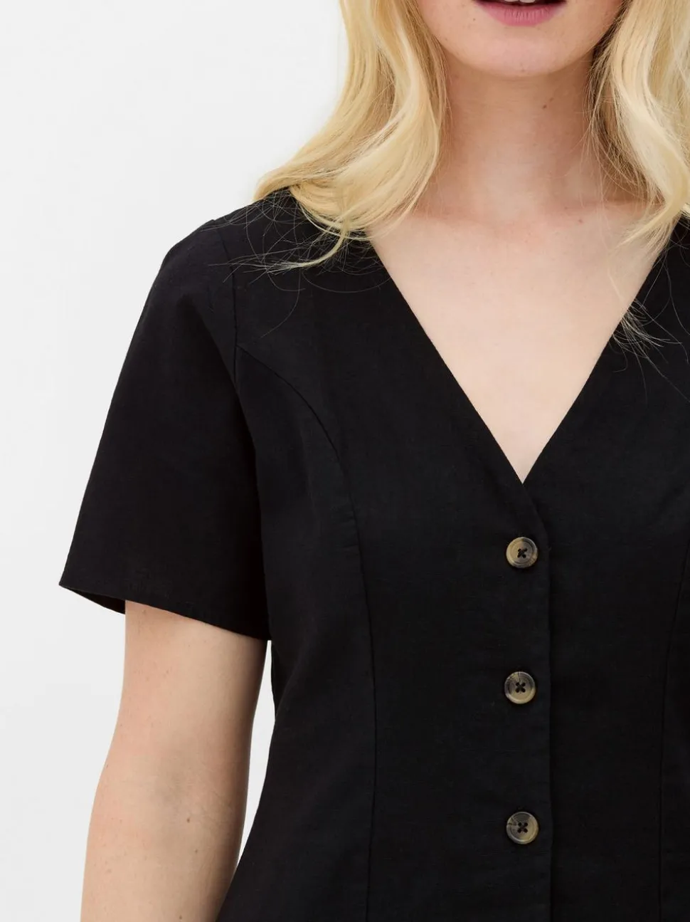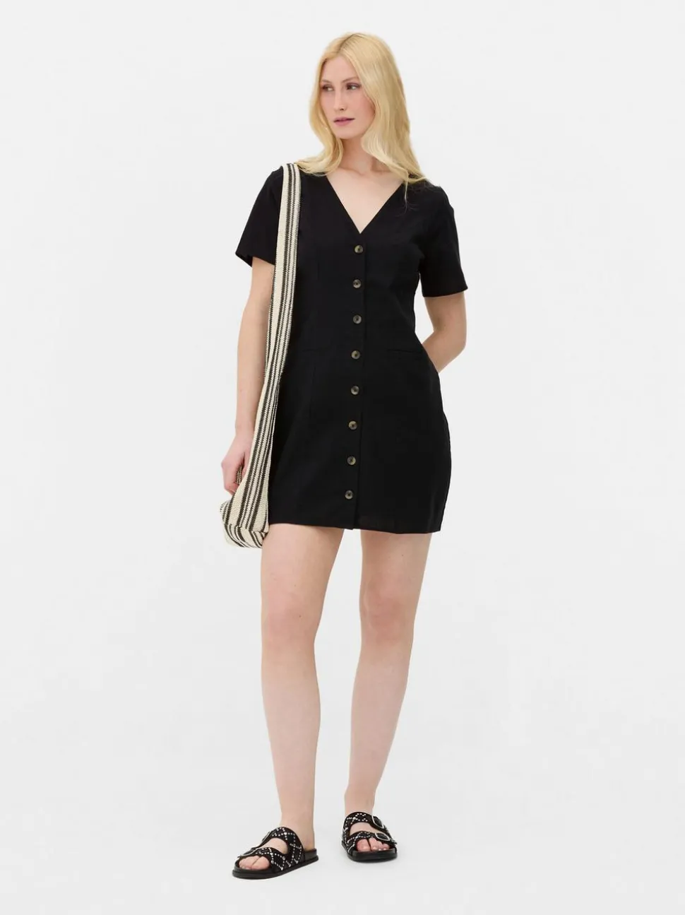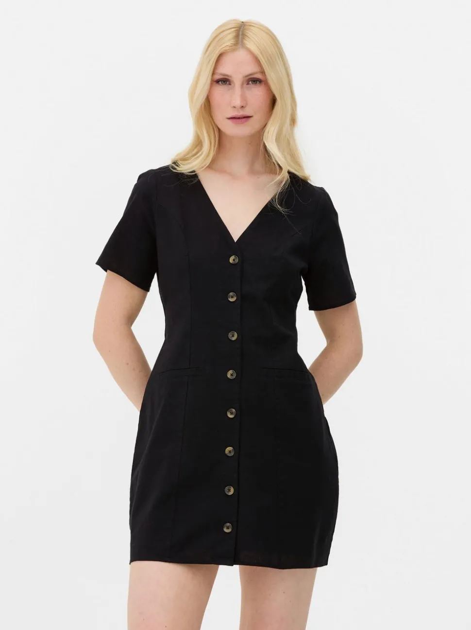 SukienkiDekolt: Dekolt w serekKrój: Standardowy krójDługość rękawów: Krótki rękawDługość: MiniRozmiar modelki: 10Materiał: MATERIAŁ WIERZCHNI – 88% bawełna, 12% len, PODSZEWKA – 100% bawełna
