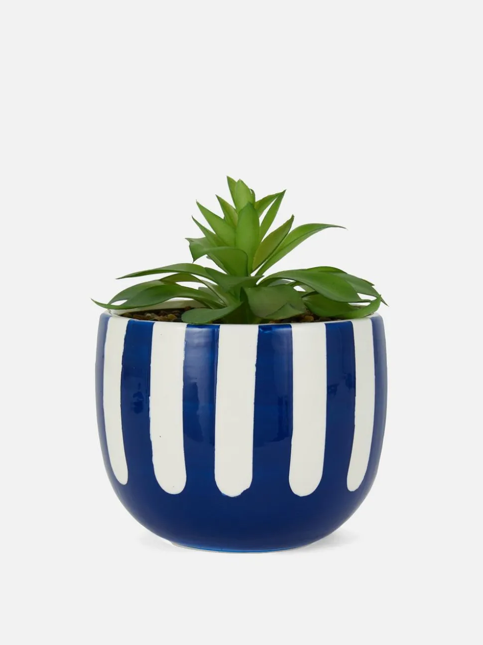 Sztuczny sukulent w pasiastej doniczce