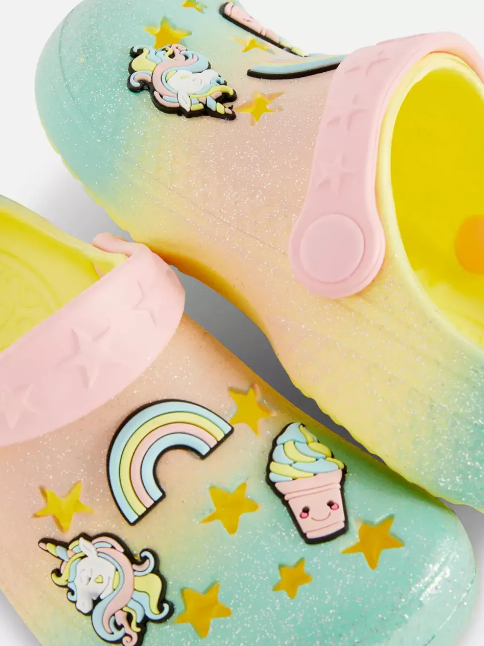 Zabawne błyszczące chodaki z efektem ombré