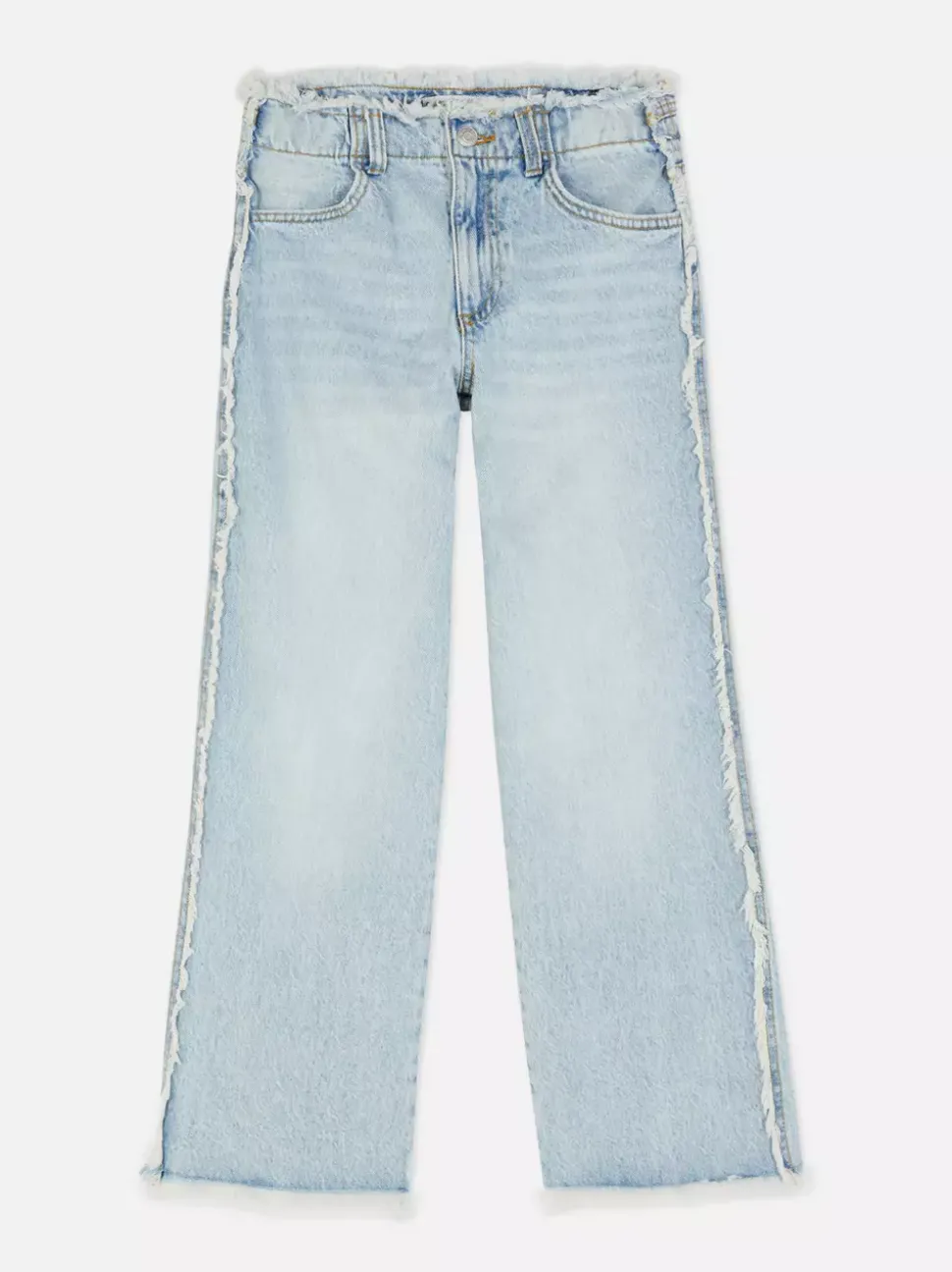 Jeansy z szeroką nogawką i postrzępionym obszyciem