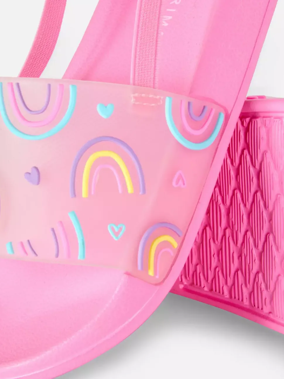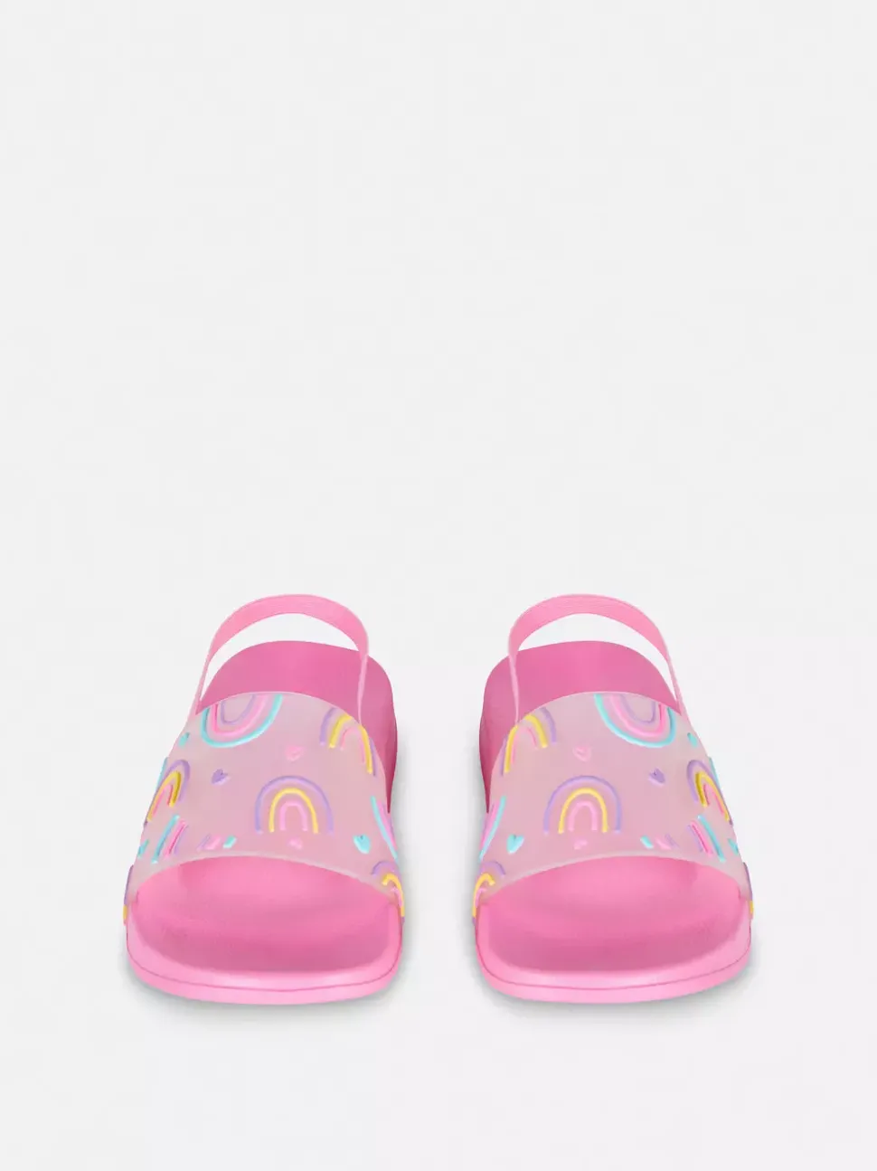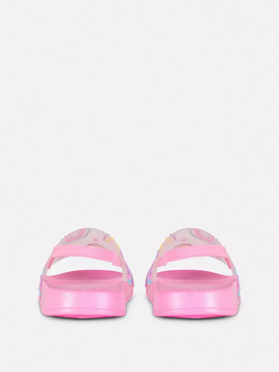 Klapki z paskiem z tyłu i tęczowym motywem