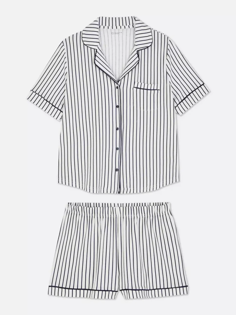 Zestawy piżamoweDekolt: Z kołnierzemDługość rękawów: Krótki rękawDługość: KrótkaMateriał: 64% poliester, 32% wiskoza, 4% elastanBezpieczeństwo pożarowe: OSTRZEŻENIE! Trzymać z dala od ognia