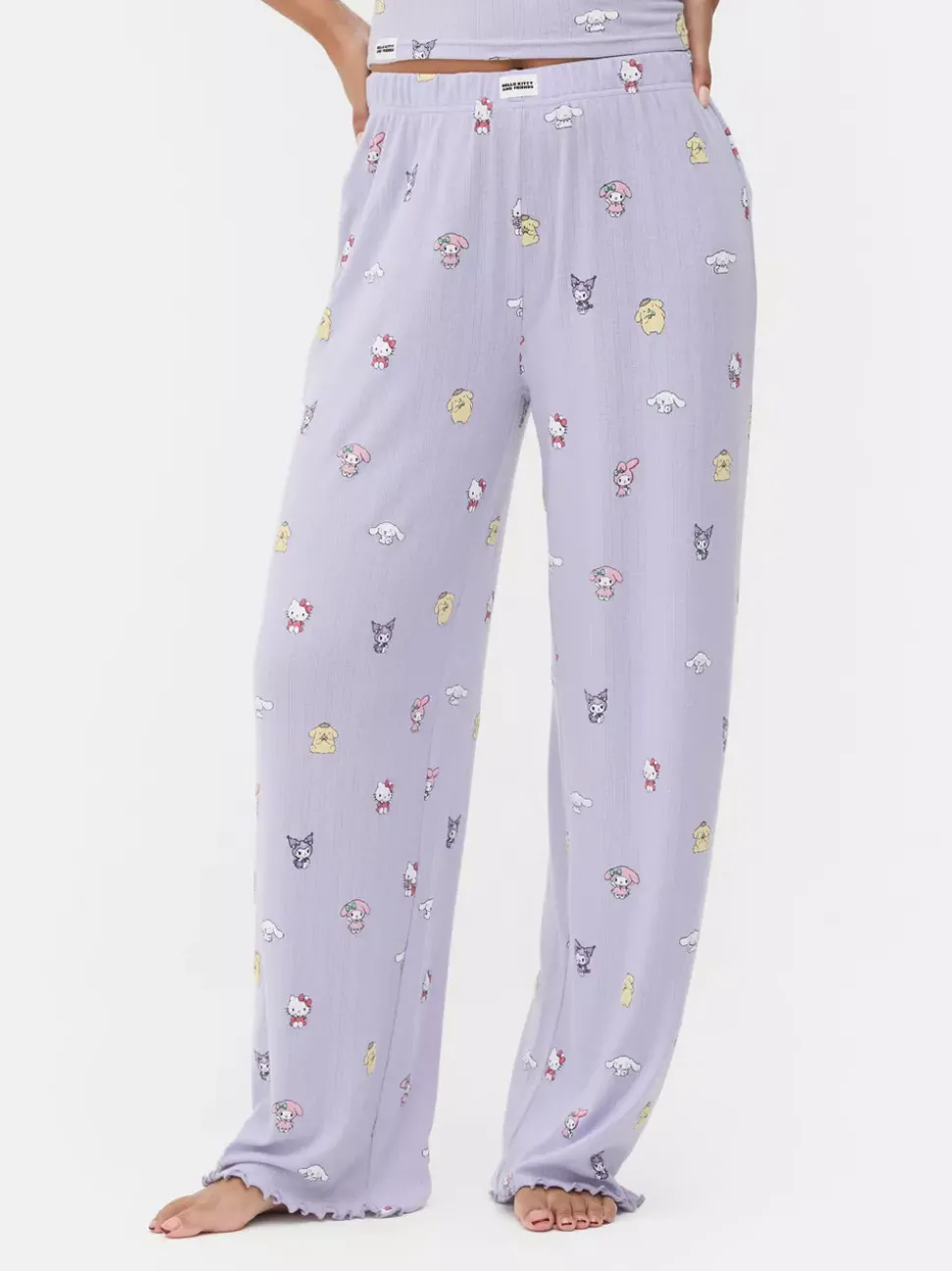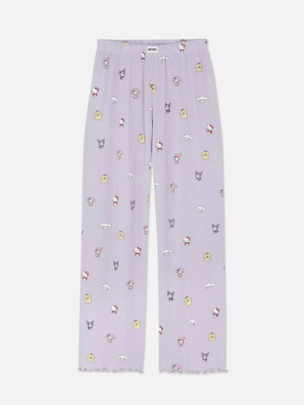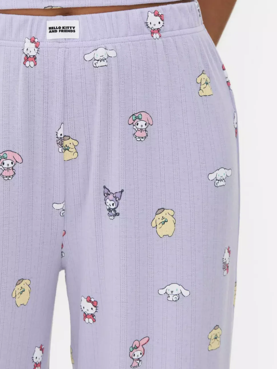 Spodnie od piżamyTelewizjaHello KittyPostać: Cinnamoroll, Kuromi, Hello KittyKrój: Szerokie nogawkiDługość: Pełna długośćRozmiar modelki: S-10/12Materiał: 92% poliester, 8% elastanBezpieczeństwo pożarowe: OSTRZEŻENIE! Trzymać z dala od ognia
