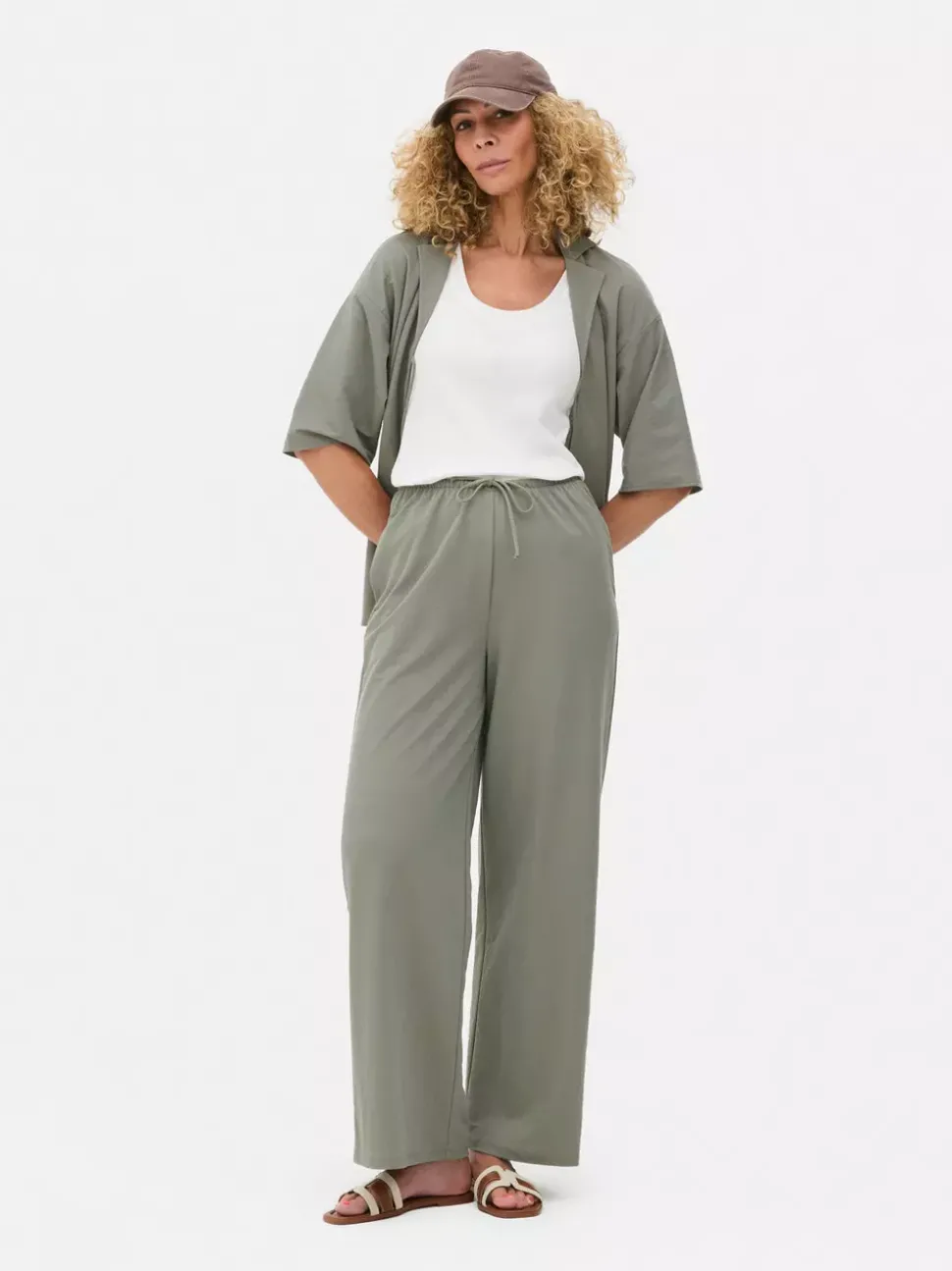 Spodnie i legginsyKrój: Standardowy krójDługość: Pełna długośćRozmiar modelki: SZapięcie: SznurekZestaw dwuczęściowyMateriał: KHAKI/CZARNY – 53% wiskoza, 47% poliamid, KOŚĆ SŁONIOWA – 60% wiskoza, 40% poliamid