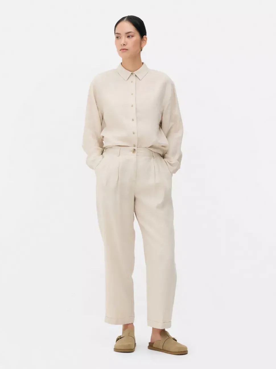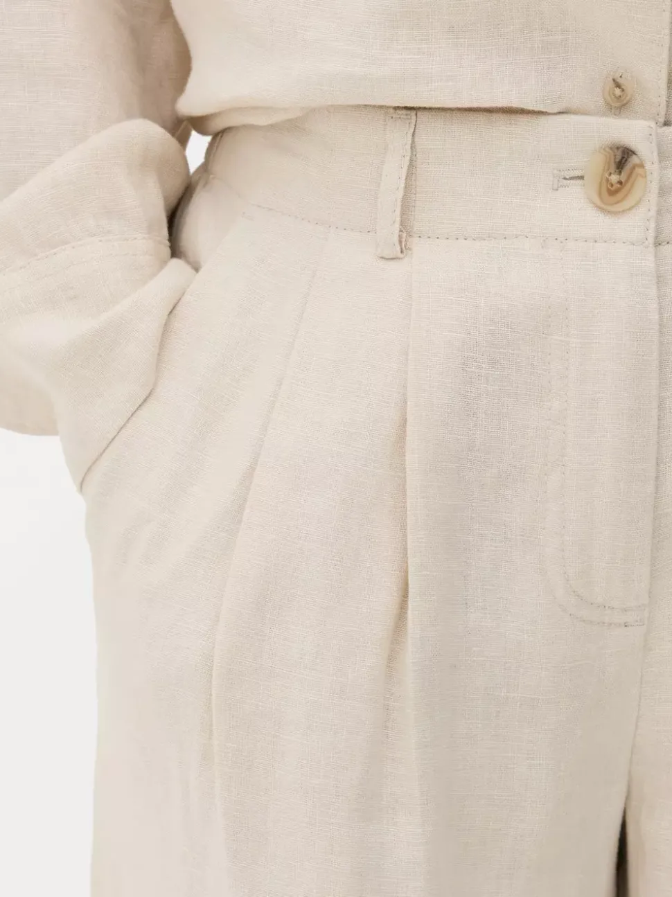 Spodnie i legginsyKrój: Standardowy krójDługość: Pełna długośćRozmiar modelki: S-10/12Zapięcie: GuzikMateriał: 100% len