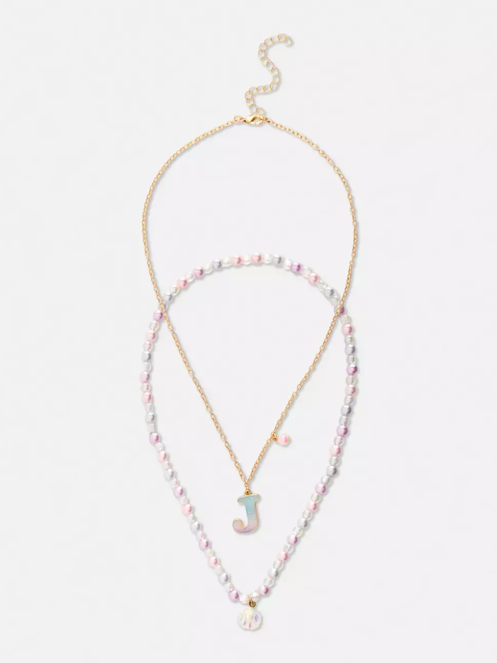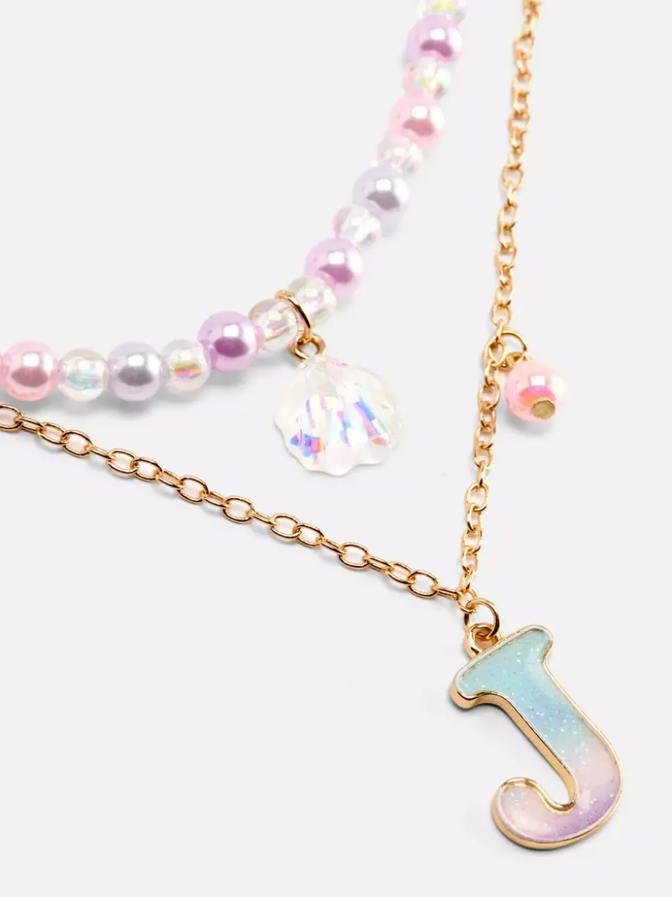 Naszyjniki z inicjałem i muszelką, 2 szt.