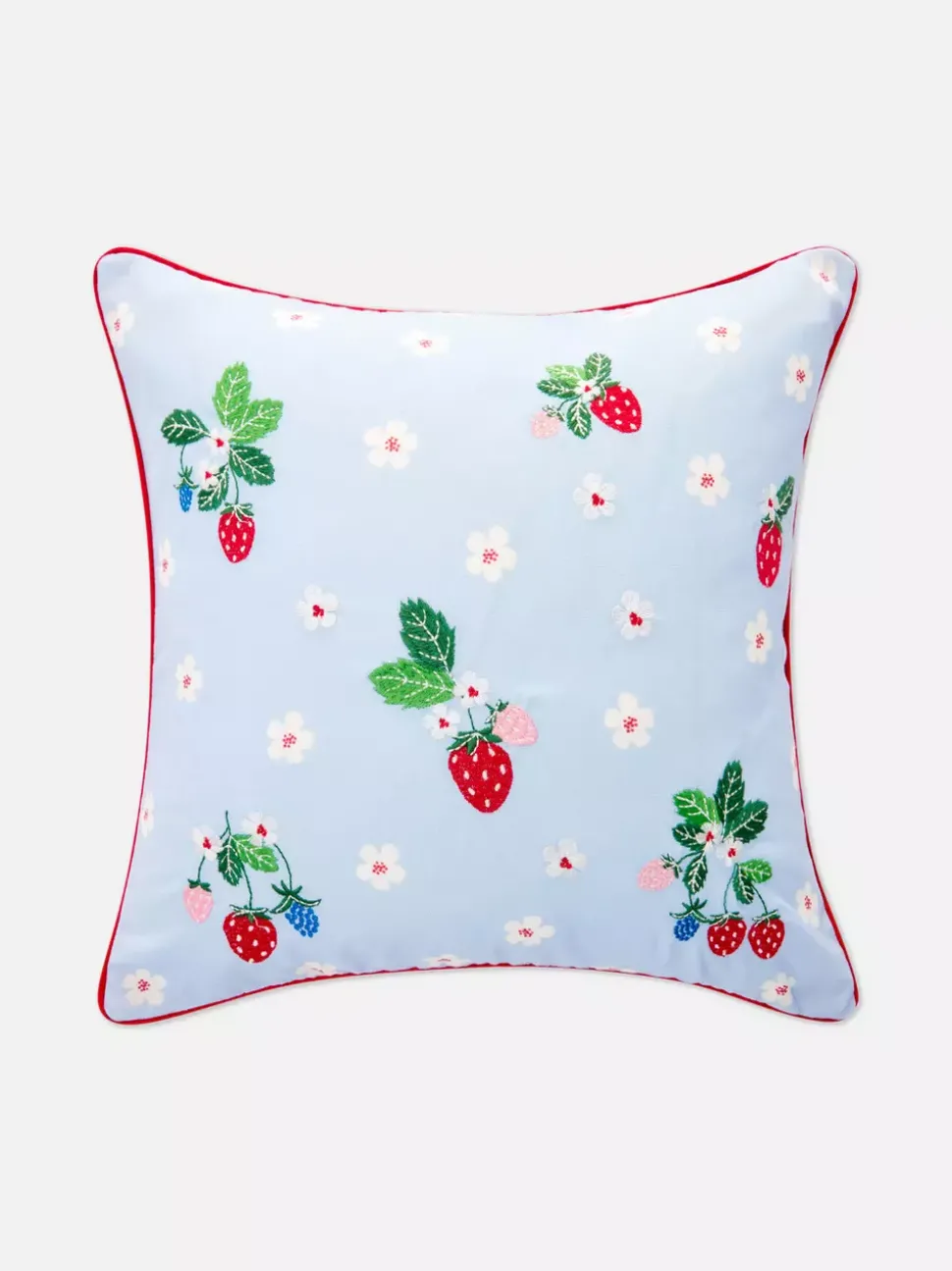 Poduszka ze wzorem w kwiaty i truskawki