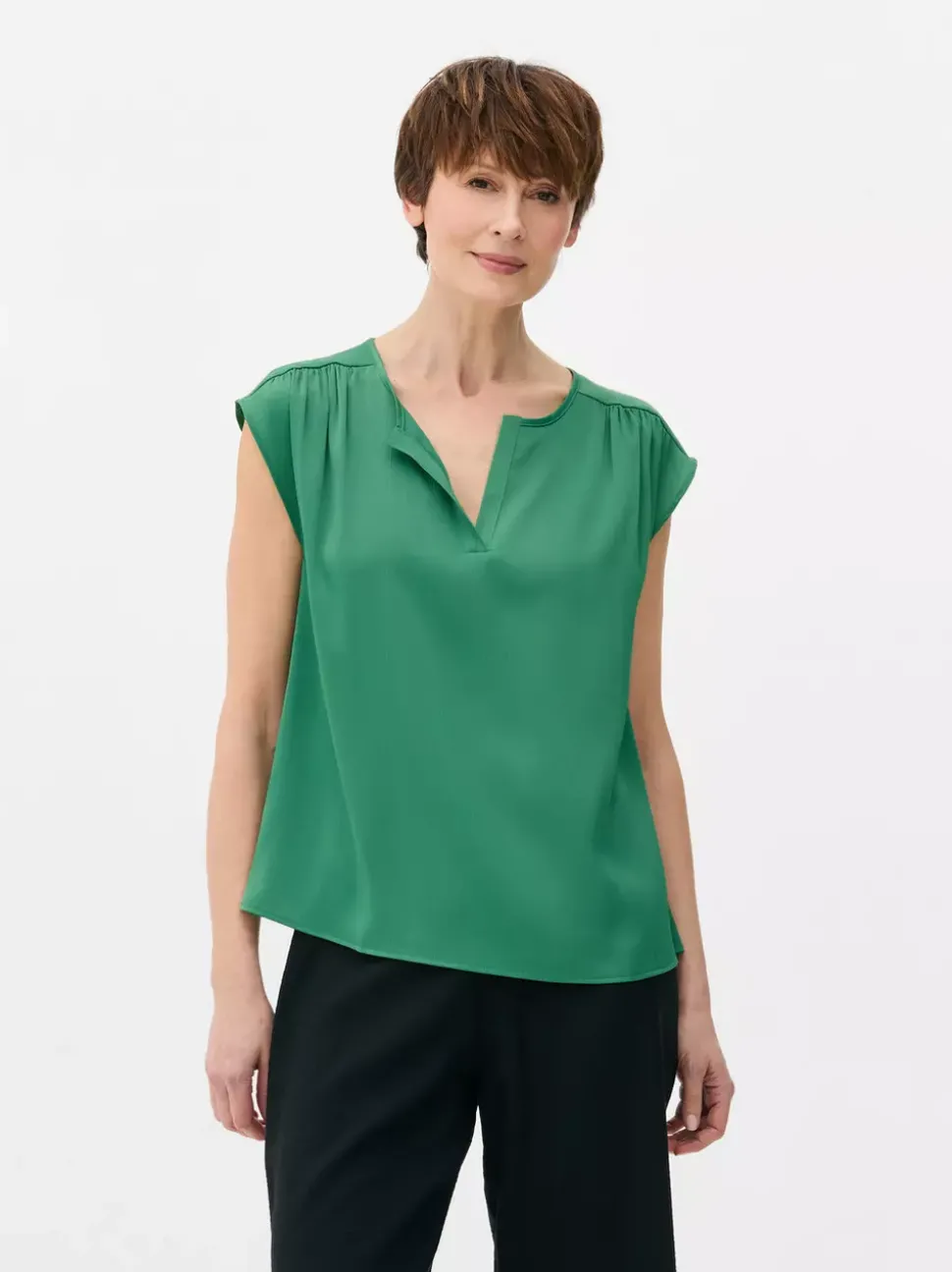 Koszule i bluzkiDekolt: Dekolt w serekKrój: Standardowy krójDługość rękawów: Krótki rękawRozmiar modelki: SMateriał: 98% poliester, 2% elastan