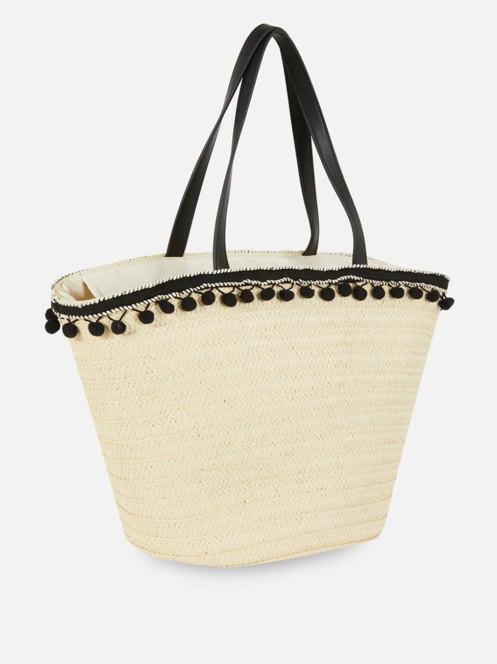 Słomkowa torba typu bucket z pomponikami