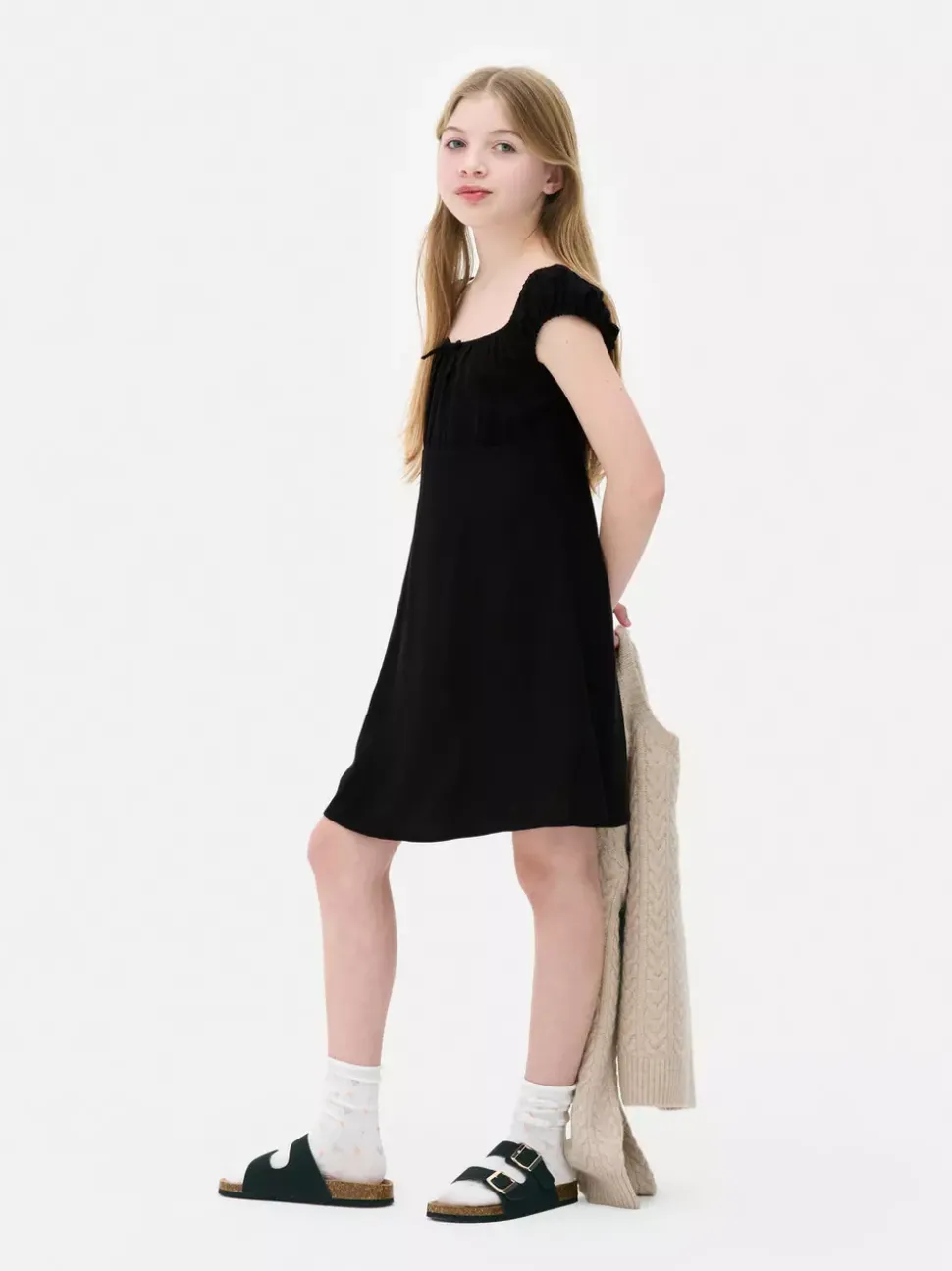 SukienkiDekolt: Kwadratowy dekoltDługość rękawów: Bez rękawówDługość: Długość nad kolanoRozmiar modelki: 9/10YrsMateriał: 85% wiskoza, 15% lenBezpieczeństwo pożarowe: OSTRZEŻENIE! Trzymać z dala od ognia